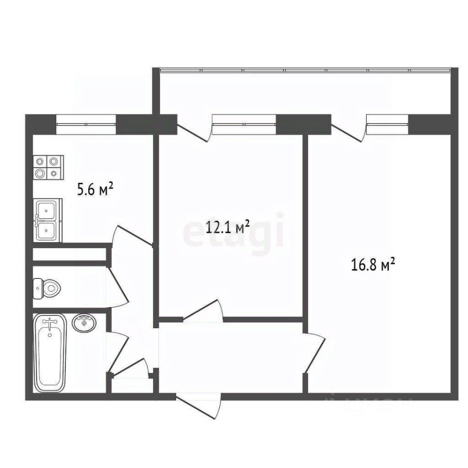 Общая площадь квартиры - 46 кв. м, кухня - 6 кв. м. Квартира расположена на 4-м этаже 5-этажного дома, построенного в 1980 году.